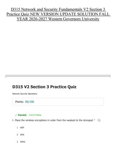 D315 Network and Security Fundamentals V2 Section 3 Practice Quiz NEW VERSION UPDATE SOLUTION FALL YEAR 2026-2027 Western Governors University