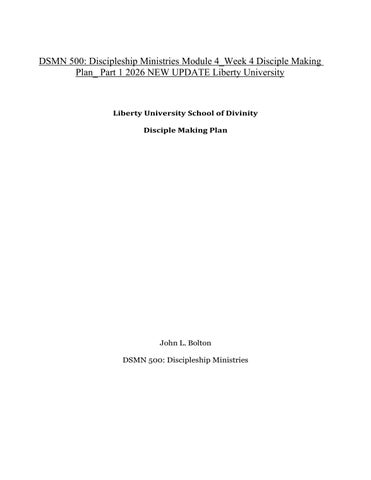 DSMN 500: Discipleship Ministries Module 4_Week 4 Disciple Making Plan_ Part 1 2026 NEW UPDATE Liberty University