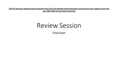ECN 221 Business Statistics Review Session Final Exam (50 Multiple Choice Questions and answers) new update version fall year 2025-2026 Arizona State University