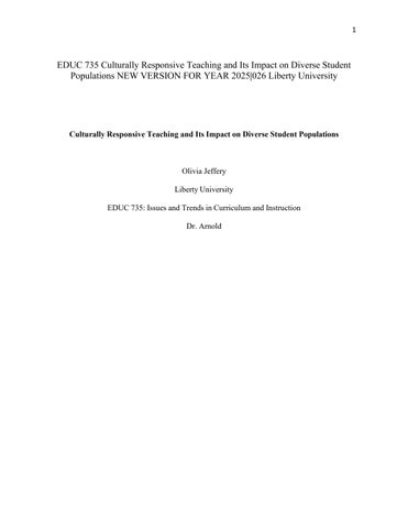 EDUC 735 Culturally Responsive Teaching and Its Impact on Diverse Student Populations NEW VERSION FOR YEAR 2025|026 Liberty University