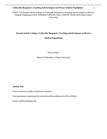 EDUC 735 Journal Article Critique 2: Culturally Responsive Teaching and Its Impact on Diverse Student Populations NEW VERSION UPDATE FALL END OF YEAR 2025-2026 Liberty University