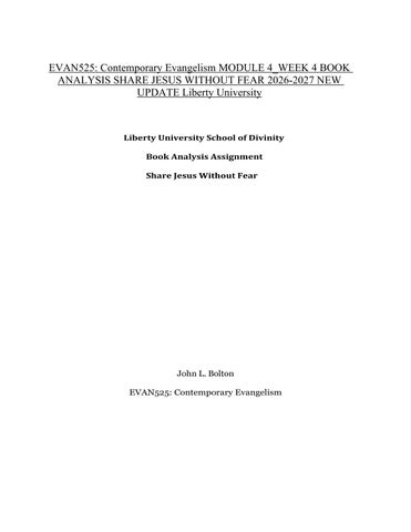 EVAN525: Contemporary Evangelism MODULE 4_WEEK 4 BOOK ANALYSIS SHARE JESUS WITHOUT FEAR 2026-2027 NEW UPDATE Liberty University