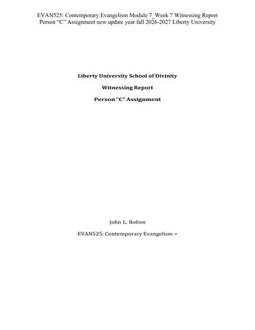 EVAN525: Contemporary Evangelism Module 7_Week 7 Witnessing Report Person “C” Assignment new update year fall 2026-2027 Liberty University