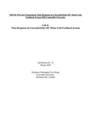 MECH 370 Lab 4 Experiment Time Response of a Second-Order DC Motor Unit Feedback System 2026 Concordia University