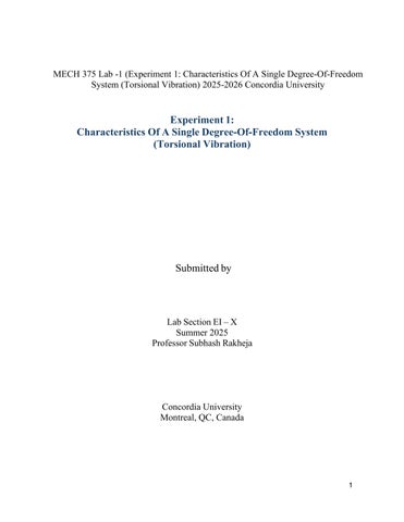 MECH 375 Lab -1 (Experiment 1: Characteristics Of A Single Degree-Of-Freedom System (Torsional Vibration) 2025-2026 Concordia University