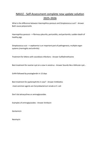 NAVLE - Self-Assessment complete new update solution 2025-2026 What is the difference between Haemophilus parasuis and Streptococcus suis? - Answer Both cause polyserositis