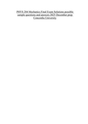 PHYS 204 Mechanics Final Exam Solutions possible sample questions and answers 2025 December prep Concordia University
