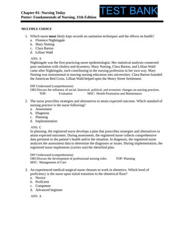 Chapter 01: Nursing Today Potter: Fundamentals of Nursing, 11th Edition