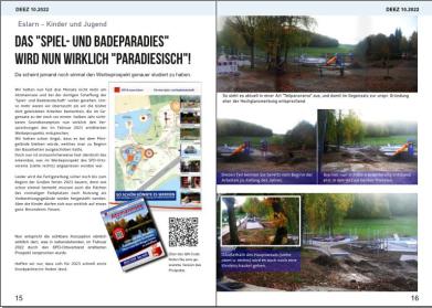 Wir hatten nun fast drei Monate nicht mehr am Atzmannsee und bei der dortigen Schaffung der "Spiel und Badelandschaft" vorbei gesehen. Um so mehr waren wir überrascht als wir die bisher dort geleisteten Arbeiten bemerkten, die im Ge gensatz zu der noch vor einem halben Jahr sicht baren Grundkonzeption nun wirklich den Ver sprechungen des im Februar 2021 emittierten Werbeprospekts entsprechen. Wir hatten schon Angst, dass es bei dem Mini gelände bleiben würde, welches man zu Beginn der Bauarbeiten ausgeschoben hatte Doch nun ist erstaunlicherweise fast identisch das erkennbar, was im Werbeprospekt des SPD Orts vereins (siehe rechts) angepriesen worden war