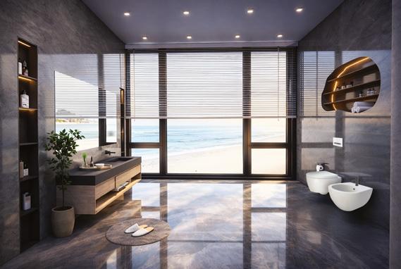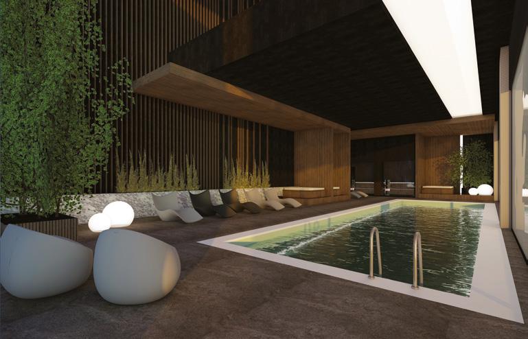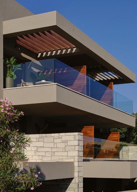 zontą, kad jūra ir baseinas susilietų į vientisą vaizdą. Baseino forma santūri, be dekoratyvinio pertekliaus, pabrėžianti kraštovaizdį kaip pagrindinį akcentą. Vandens paviršius veikia tarsi veidrodis – sugeria dangų, saulės judėjimą ir aplinkinių medžiagų spalvas, nuolat keisdamas erdvės nuotaiką. Čia dizainas keičiasi pagal paros ritmą: ryte baseinas atrodo lengvas ir gaivus, vidurdienį tampa ramia, vėsinančia zona, o vakare – intymia, švelniai apšviesta poilsio erdve.