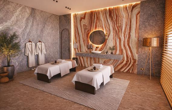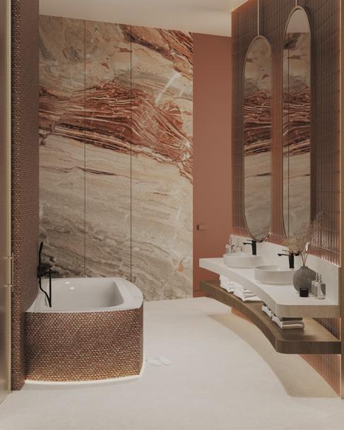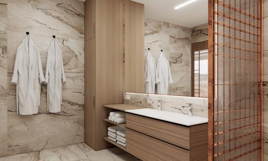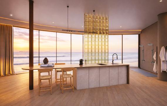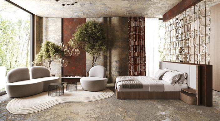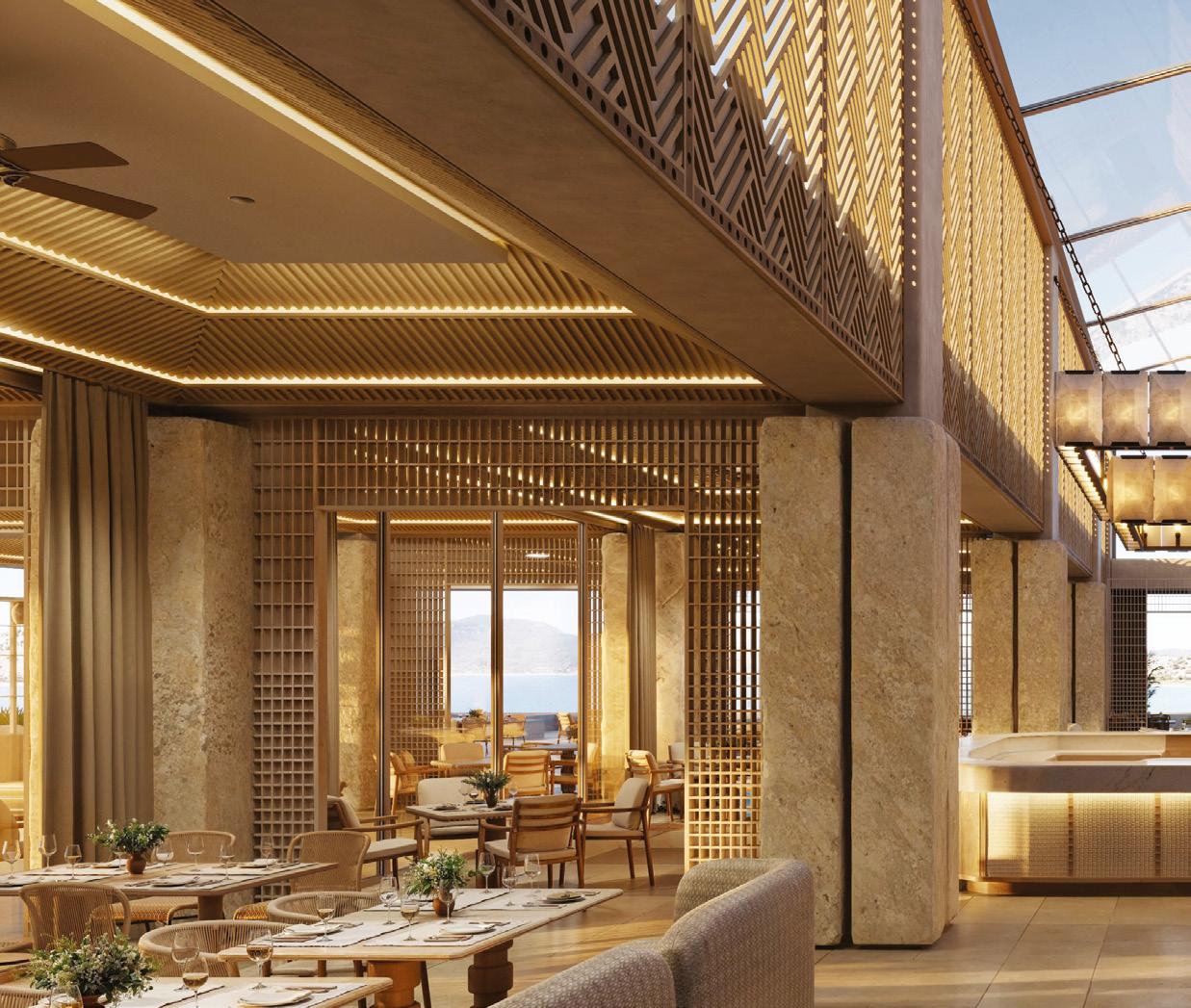 Kuriant kurorto „Amoh Luxury Collection“ dizainą sąmoningai atsisakyta efektingų gestų – pasirinkta subtili, ilgalaikė estetika, veikianti per proporcijas, medžiagiškumą ir atmosferą. Vidinės erdvės čia formuojamos taip, kad keltų ramybės jausmą, taktilinius ir intuityvius pojūčius. Spalvų paletė – natūralūs, saulės paveikti tonai: šiltas akmuo, švelnus smėlis, išblukę žemės atspalviai. Tai ne „balta prabanga“, o labiau Viduržemio jūros regionui būdingas santūrus rafinuotumas. Baldai – žemi, propor-