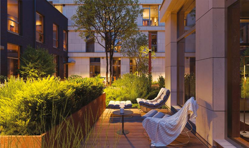 komplekso aukštus išdėstytos bendros terasos, iš viso daugiau kaip 2000 kv. m ploto.