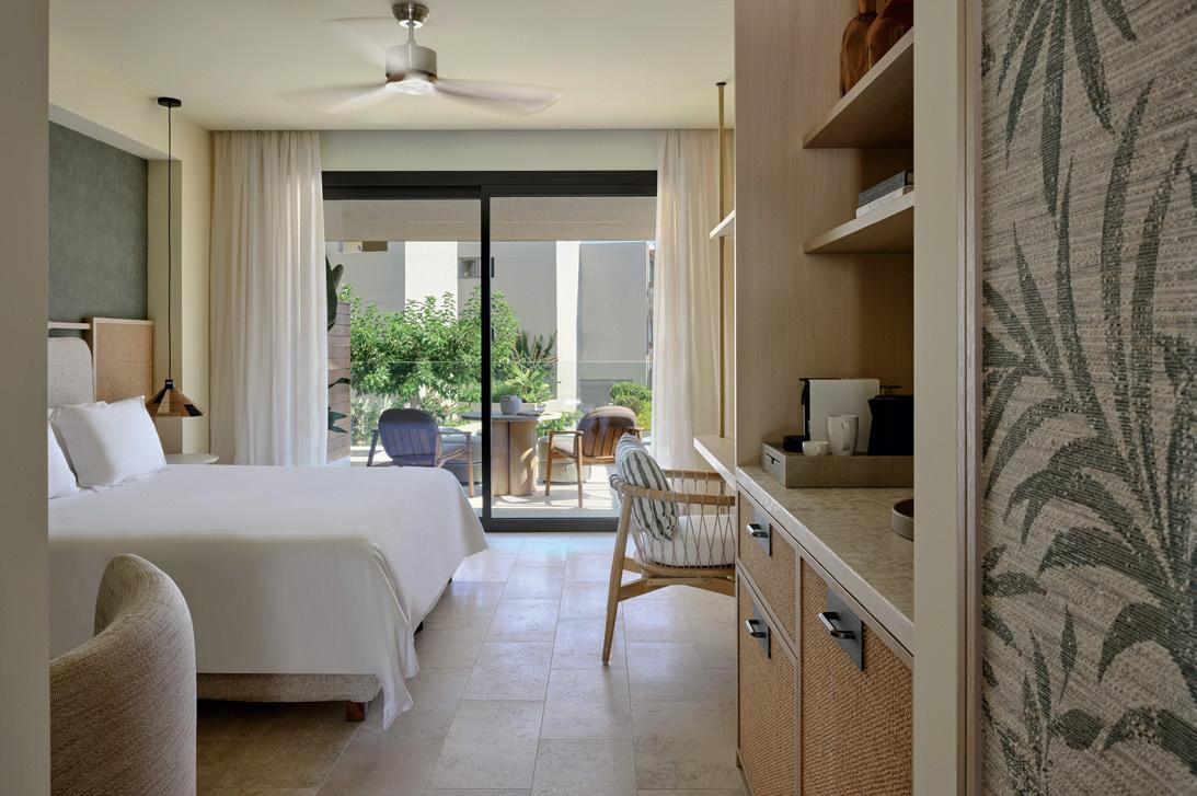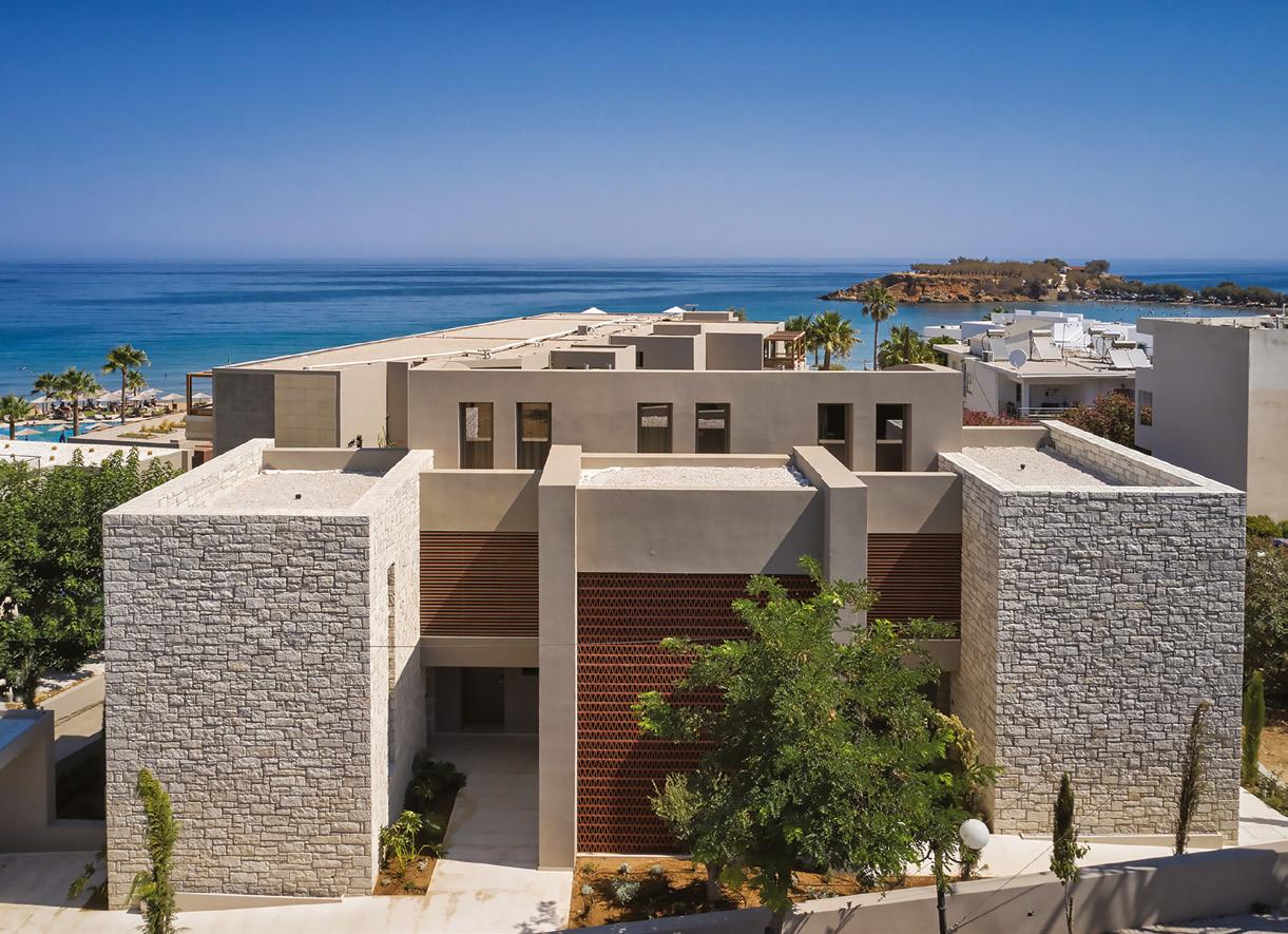 Chanijos mieste esančiame kurorte „Aphi Kalli Sunken Gardens“ architektai sąmoningai vengė paviršinio įspūdžio ir susikoncentravo į pojūčius. Projekto ašis – įgilinti, įžeminti sodai. Jie – ne dekoratyvinis elementas, o visos architektūrinės ir interjero struktūros pagrindas. Šios žemiau natūralaus gatvės lygio esančios erdvės atskiria nuo miesto triukšmo, kartu leisdamos natūraliai cirkuliuoti šviesai, orui ir tarpti augmenijai. Toks dizainas neiškelia pastato virš aplinkos –priešingai, tarsi „įaugina“ jį į žemę. Čia sąmoningai ištirpdomos interjero ir lauko ribos. Numeriai, bendrosios erdvės ir praėjimai orientuoti į sodus, todėl žaluma tampa nuolatiniu vizualiniu ir emociniu fonu. Pasirinktos santūrios ir taktilinės medžiagos: natūralus akmuo, mineralinis tinkas, matiniai