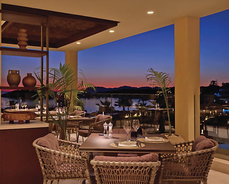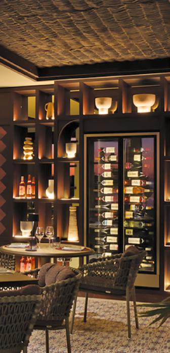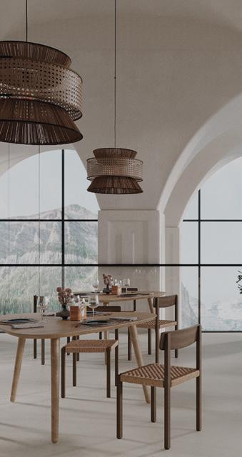jere nėra perteklinių detalių –dizainas čia veikia kaip potyrių scenografija, ne kaip savarankiškas objektas. Žemi, patogūs, suapvalintų formų baldai kviečia ilgam prisėsti, dalytis patiekalais ir pokalbiais. Vienas svarbiausių elementų – apšvietimas. Šiltas, žemas, sluoksniuotas, be ryškių kontrastų, jis kuria minkštą, beveik namų atmosferą. Vakare šviesa pabrėžia paviršių tekstūras, stalo linijas ir žmonių judėjimą, tačiau niekada neužgožia erdvėje vyraujančios ramybės. Vidaus ir lauko santykis čia taip pat svarbus. Restoranas suprojektuotas taip, kad žmonės jaustų aplinką: oras, kvapai ir natūrali temperatūros kaita tampa valgymo potyrių dalimi. Tai sustiprina Viduržemio jūros gyvenimo, kuriame vakarienė yra ne skubėjimas, o ritualas, pojūčius.