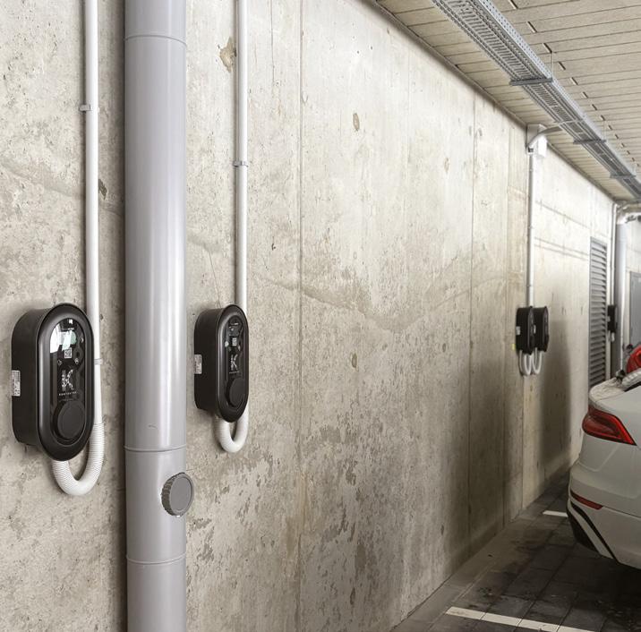 mobiliams. Šiuo sprendimu padidintas pastato patrauklumas ir suteikta papildomo komforto jame dirbantiems ir besilankantiems žmonėms. Be to, EV stotelės užtikrina saugų ir efektyvų elektros apkrovų valdymą pastate. Kadangi jos integruotos į pastato BMS, energijos apskaita yra paprasta ir skaidri.