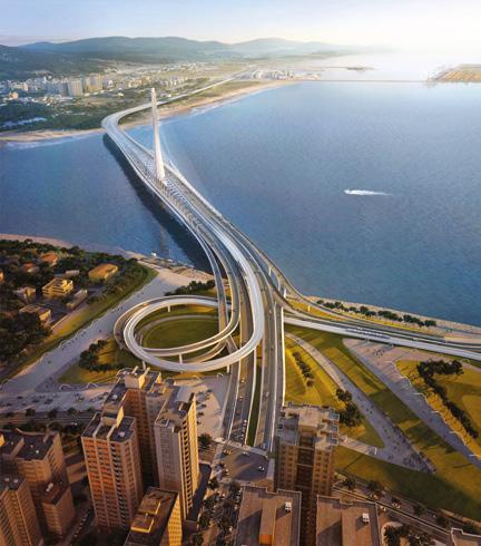 Vienas milžiniškas, net 200 m aukščio, betoninis pilonas, išlaikantis 920 m ilgio tiltą, – tokią idėją sėkmingai baigia įgyvendinti „Zaha Hadid Architects“ komanda. Dandziango (Danjiang) tiltas – ilgiausias pasaulyje vieno pilono asimetrinis tiltas su 450 m ilgio tarpatramiu – pirmą kartą per šalies istoriją sujungs Tamsui upės žiočių rytinį ir vakarinį krantus. Projekte taip pat numatyta ateityje per tiltą nutiesti geležinkelio bėgius, pėsčiųjų ir dviračių takus. Skulptūrinis tilto pilono išdėstymas ir kelio dangos aukštis tiksliai apskaičiuoti pasitelkus detalų trimatį estuarijos modeliavimą ir sudarius žemėlapius. Tokiu būdu buvo užtikrintas saugus laivų plaukimas upe ir galimybė netrukdomai stebėti saulėlydžius iš populiarių apžvalgos taškų palei upę. Projektuojant vienintelį piloną, be kita ko, buvo griežtai laikomasi estuarijos ekosistemos apsaugos programos reikalavimų, todėl konstrukcija daro minimalų poveikį upės vagai. Iškilmingas tilto atidarymas numatytas gegužės 12 d.