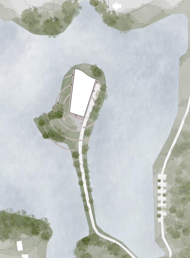 Projektenumatytapanaudotitrinkeles(Forte natūralios spalvos, sendinta) iš BETONO MOZAIKOS. Sklype tai atrodytų kaip jau esanti danga, nepaneigianti pagoniškumo motyvų bendros stilistikos. Trinkelės būtų panaudojamos automobilių aikštelėms ir gatvei, skirtai nuvažiuoti iki pusiasalio.