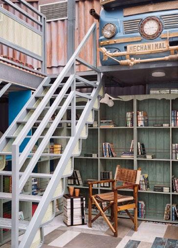 Išsaugoti nereikalingi daiktai panaudoti gaminant įvairių formų ir konstrukcijų stalus ir sofas bei įvairių stilių spalvingus kavos staliukus, kurie dekoruoti kompaktiniais diskais ir senų viryklių rankenėlėmis. Kitos interjero detalės sukurtos iš senų vonios ventiliatorių ir aliejaus statinių, perpjautų per pusę.