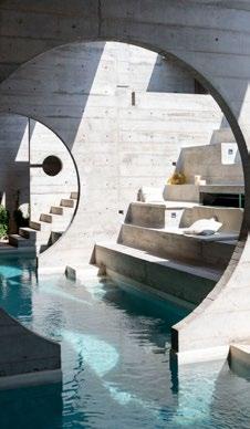 Bendros erdvės centrą užima baseinas, besidriekiantis per visą objekto ilgį. Šios erdvės sienos, grindys ir lubos yra pagamintos iš vietoje išlieto betono. Baseinas papildo natūralaus vėsinimo sprendimus. Šalia jo yra laiptuotos sėdimos vietos, skirtos svečiams, norintiems ilsėtis prie vandens.