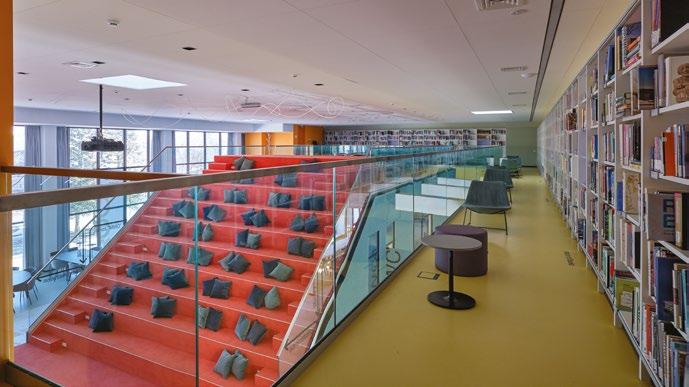 UAB „Mosas“ jau antrą dešimtmetį rūpinasi efektyvių garso slopinimo sprendimų (aklinos akustinės aliuminio, medinės ir skaidrios akustinės organinio stiklo sienutės) tiekimu viešuosiuose pastatuose, todėl naujajame pastate komanda naudojo garsą sugeriančius aliuminio elementus „Kohlhauer Alumna“, kaip triukšmą slopinantį barjerą.