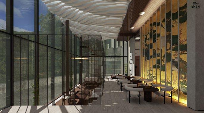 Vidaus interjeras yra minimalistinis, modernus, neperkrautas detalėmis, net ir apartamentuose esančiuose vonios kambariuose yra galimybė stebėti gamtą. Viešbutis yra beveik kilometro ilgio, tvaraus dizaino ir tai yra pirmas viešbutis Azijoje, kuriam buvo suteiktas prestižinis „LEED Green Building“ sertifikatas.