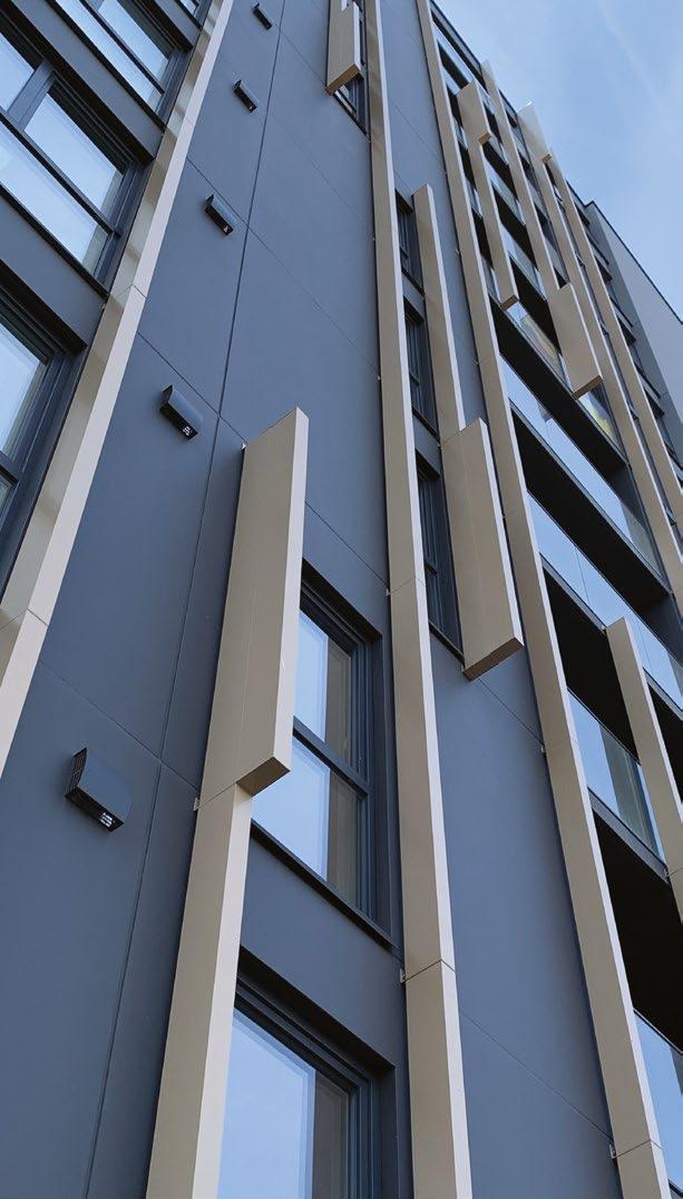 Bendrovė „Barema Rytai“, gaminanti ir parduodanti visų rūšių saulės kontrolės sistemas, šiam projektui tiekė apie 2 500 metrų ilgaamžių, lengvai prižiūrimų ir nesudėtingai montuojamų antracito spalvos ekstrūduoto profilio aliuminio fasado lamelių, kurios panaudotos kaip fasado architektūrinė dalis, tad įrenginys ne tik apsaugo nuo saulės, bet kartu yra ir papildoma moderni pastato dekoro detalė, maskuojanti būtinas, bet nepatraukliai atrodančias pastato išorės detales.