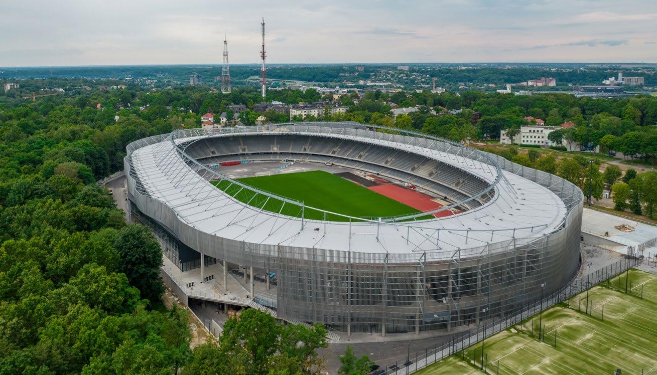 Kad naujas statinys nedominuotų aplinkoje, pasirinktas ne vientisas tūris, o suprojektuotas nuosekliai žemėjantis pastatas. Jo konstrukcijos – gelžbetoninės su metalo konstrukcijų denginiu. Fasadams naudotos stiklo ir aliuminio konstrukcijos, perforuota skarda, o administracinės dalies fasado apdailai pasirinkta moderni, natūrali ir itin patvari cinko skarda su vario ir titano priedais.