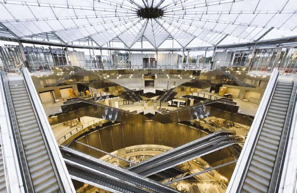 Prancūzų studija „Dominique Perrault Architecture“ suprojektavo įspūdingą Paryžiaus Villejuif-Gustave Roussy metro stotį: gilią cilindrinę šachtą dengia skaidrus permatomas stogas, todėl atrodo, kad stotis skęsta 70 m skersmens apverstame dangoraižyje. Toks įspūdis sukurtas 50 m į žemės gelmes besidriekiančiu tuneliu, iki pat peronų užtvindančiu stotį natūralia dienos šviesa. Vieną giliausių Prancūzijos infrastruktūros objektų kasdien aplanko daugiau kaip 100 tūkst. keleivių, čia yra daugybė galerijų ir balkonų, sujungtų pėsčiųjų tiltais bei eskalatoriais. Pirmuose dviejuose lygiuose įrengtos viešosios erdvės, parduotuvės ir paslaugų teikimo vietos. Iš viršaus stotis primena stiklinį paviljoną spiraliniu stikliniu stogu, sudarytu iš trijų sluoksnių.