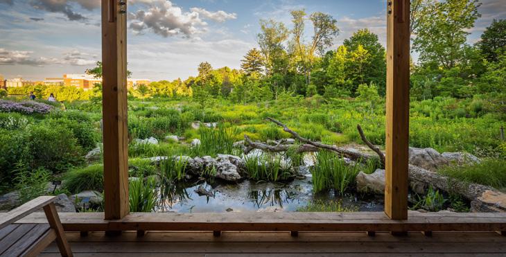 2021 m. Pensilvanijos (JAV) universiteto miestelyje (University Park), 1,2 ha plote Pensilvanijos valstijos mokslinių tyrimų medelyne – arboretume (The Arboretum at Penn State), kraštovaizdžio architektūros įmonė „Didier Design Studio“, bendradarbiaudama su architektais
