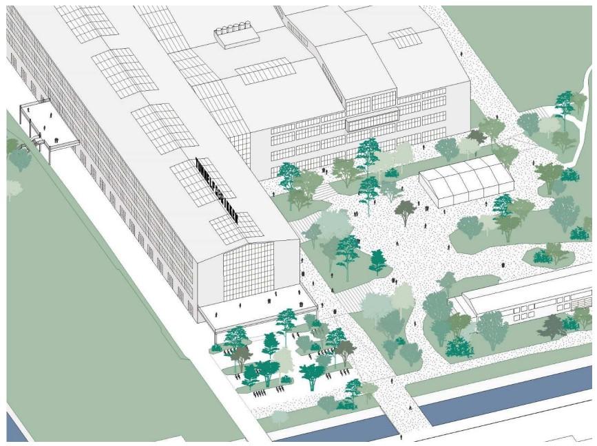 Šio konversijos projekto, viena iš svarbių detalių, jog buvo stengtasi naudoti kuo labiau adaptyvų pakartotinį naudojimą. Išsaugojant kuo labiau istorinius pastato elementus nepridedant naujų. Norint išgauti tokias didelias erdves naujos statybos pastatuose bus sunaudojama labai daug medžiagų,o imdamiesi adaptyvaus principo mes galime išnaudoti visas jau esamas struktūras taip patpabrėždami harmoniją tarp istorijos išsaugojimo, praeities ir ateities. Papildomai, sklypo vystymo metu yra suprojektuota labai daug apželdintų vietų, vidinių kiemelių su žaidimo aikštelėmis kurie projektuojami atrenkant kuo natūralesnias medžiagas. Papildomai, kadangi sklypas randasi ties Danes upės krantu, buvo stengtasi kuo labiauatkurtižmogausvizualinįryšisugamta.