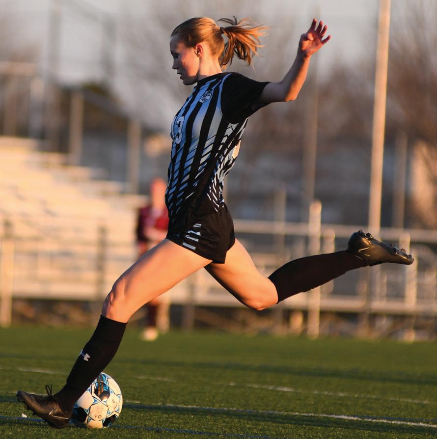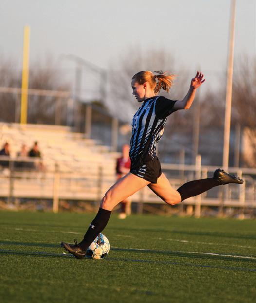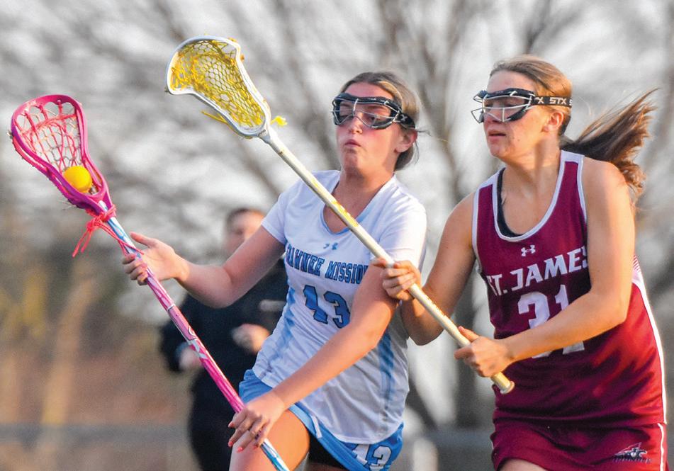 BOTTOM RIGHT Freshman Henley Ganz runs down her opponent as she approaches St. James’ goal.