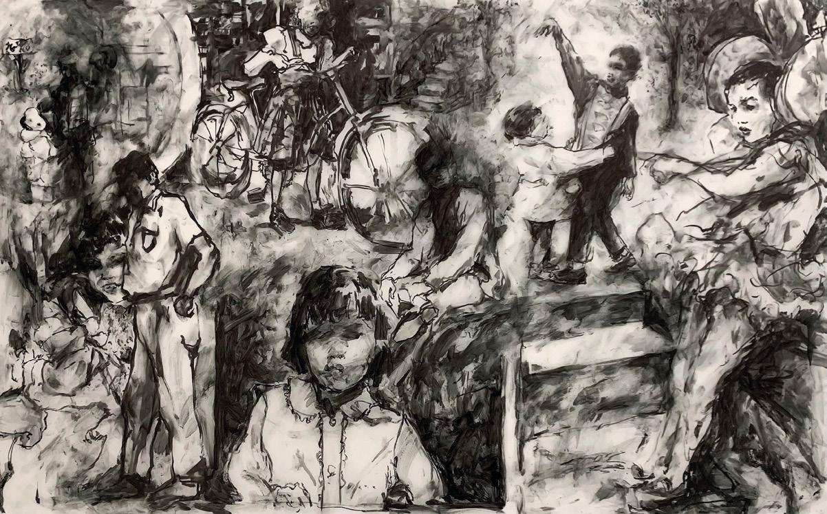 “I studied abroad in Madrid last year, a place where some of my family is from. While I was in Spain, the Asian American Center at Tufts exhibited one of my drawings in their annual exhibition and 40th anniversary celebration. It came from a nearly impossible prompt in one of my SMFA classes to draw a portrait of everyone we know. I began with my family, working off of photographs including some of relatives I’d never met. Most of my work relates to my family, weaving in individual stories, my upbringing, cold facts, and larger historic trends.”