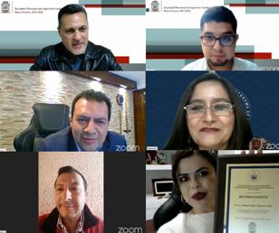 En el presídium se encontraban el presidente de la SMIG y el vocal y coordinador de los Capítulos Estudiantiles; por parte de la SEPI ESIA UZ, la coordinadora de la Maestría de Ingeniería Civil del posgrado y el jefe del área de Geotecnia; por la Mesa Directiva del Capítulo Estudiantil de la SEPI ESIA UZ, el tutor y la presidenta del capítulo.