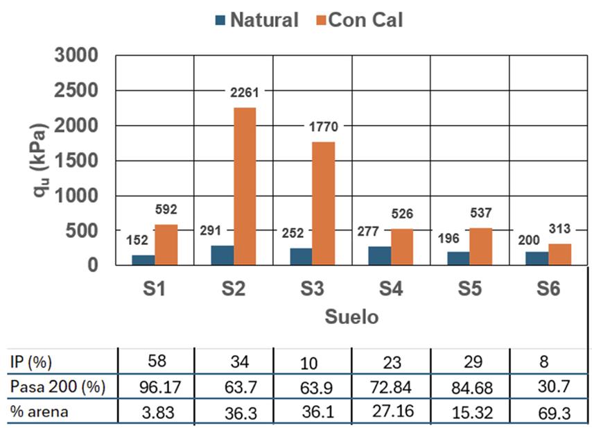 Módulos de resiliencia de suelos naturales y estabilizados con cal.