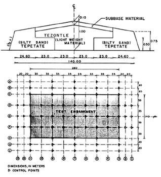 developed by Soil Mechanics, it was deemed convenient to construct a test embankment to confirm the theoretical predictions and to provide a better support to the project of the apron.