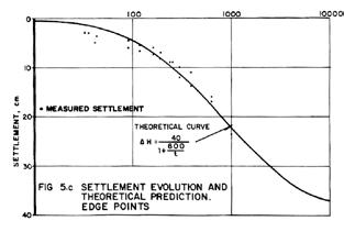 In order to extrapolate the settlements values to the longterm condition, equation 2 of Ref. 2 was applied, which after taking into consideration the results of the measurements recorded, is transformed into equations 3 and 4, for internal and edge points, respectively.