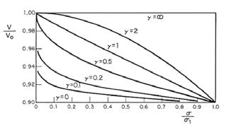 2. The general compressibility equation has a sound philosophic foundation, that is, satisfies the philosophic principle: “The equation relating V and σ may exist only through a non dimensional parameter and should, independently of critical points, satisfy the extreme boundary conditions, namely: V = Vo for σ = 0 and V = 0 for σ = ∞.