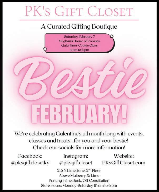 Welcome to February in Lexington! The excitement and hustle of the holidays is over, the winter doldrums have settled in, and Valentine’s Day is right around the corner. It can be a di cult time of year here in Central Kentucky as the days remain short, the temperatures cold, and gray skies fade into gray asphalt. This month can certainly feel emotionally loaded, especially for those feeling lonely.