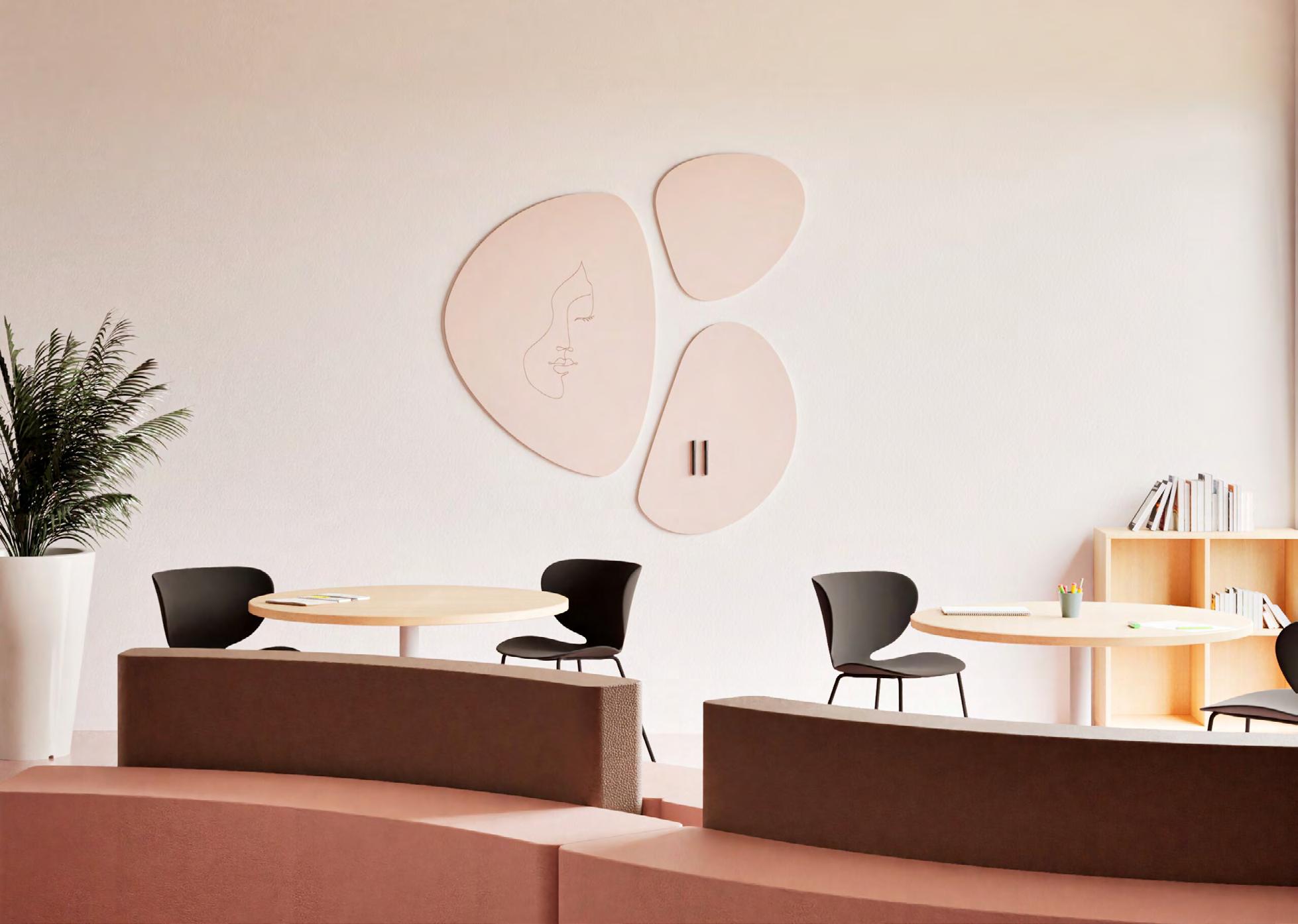 Chameleon Pebbles Acoustics apportent calme et confort dans les environnements d’apprentissage animés. Leurs formes ludiques réduisent les bruits et rendent chaque mur inspirant. Disponibles en plusieurs couleurs (p. 46) et configurations, à combiner avec les tableaux blancs Pebbles (p. 22–23).