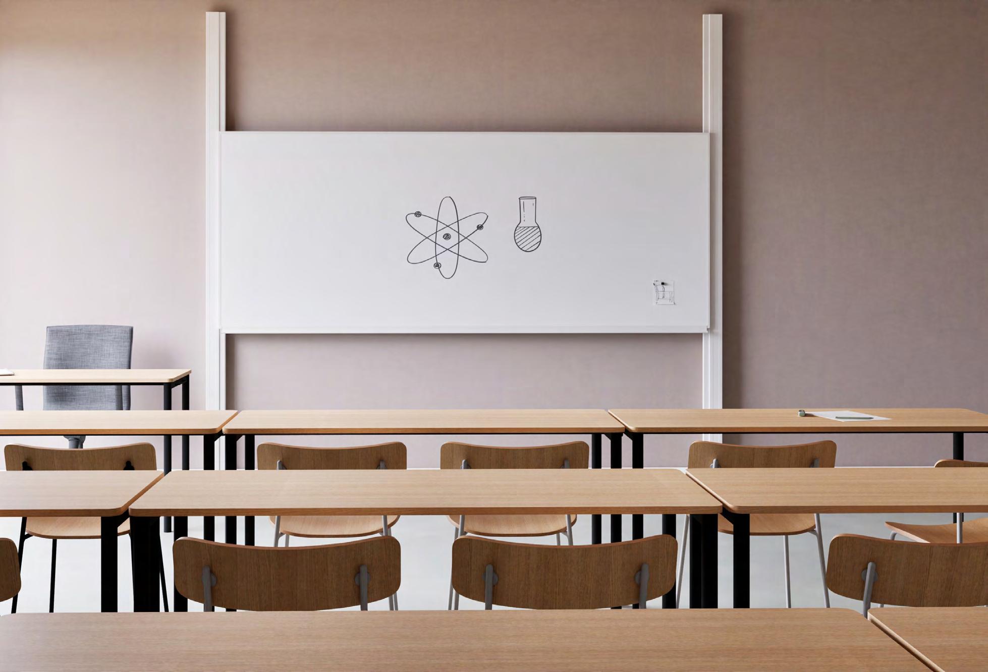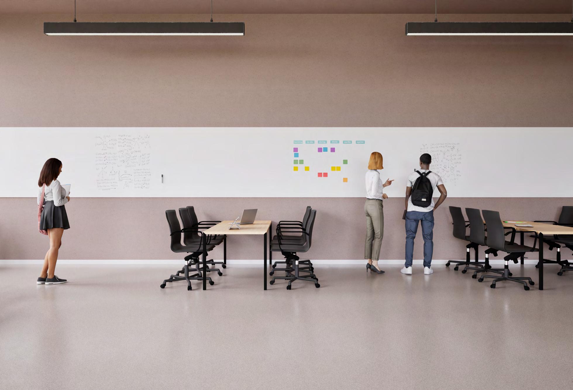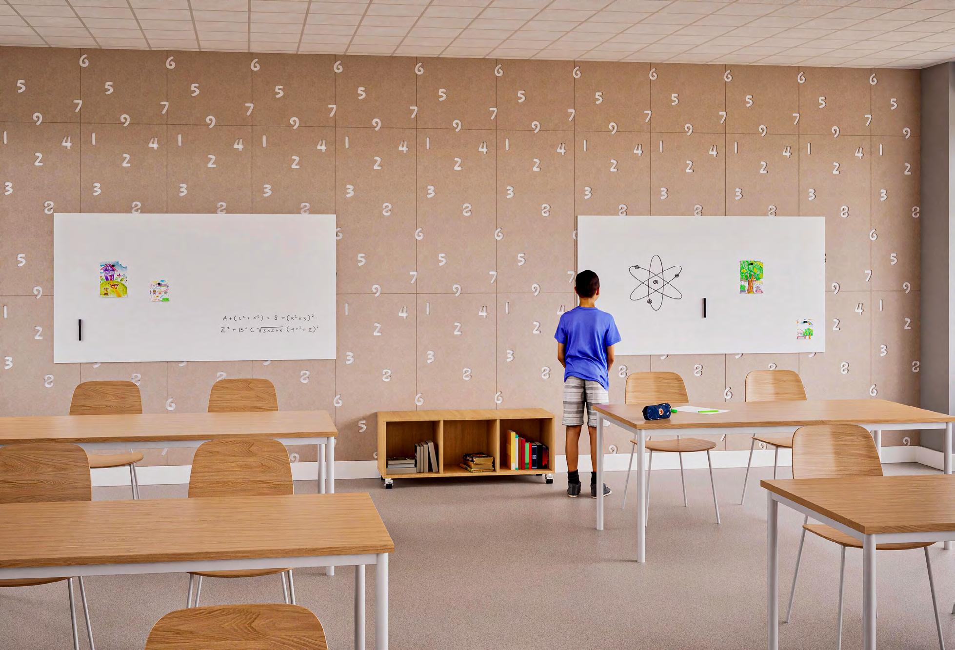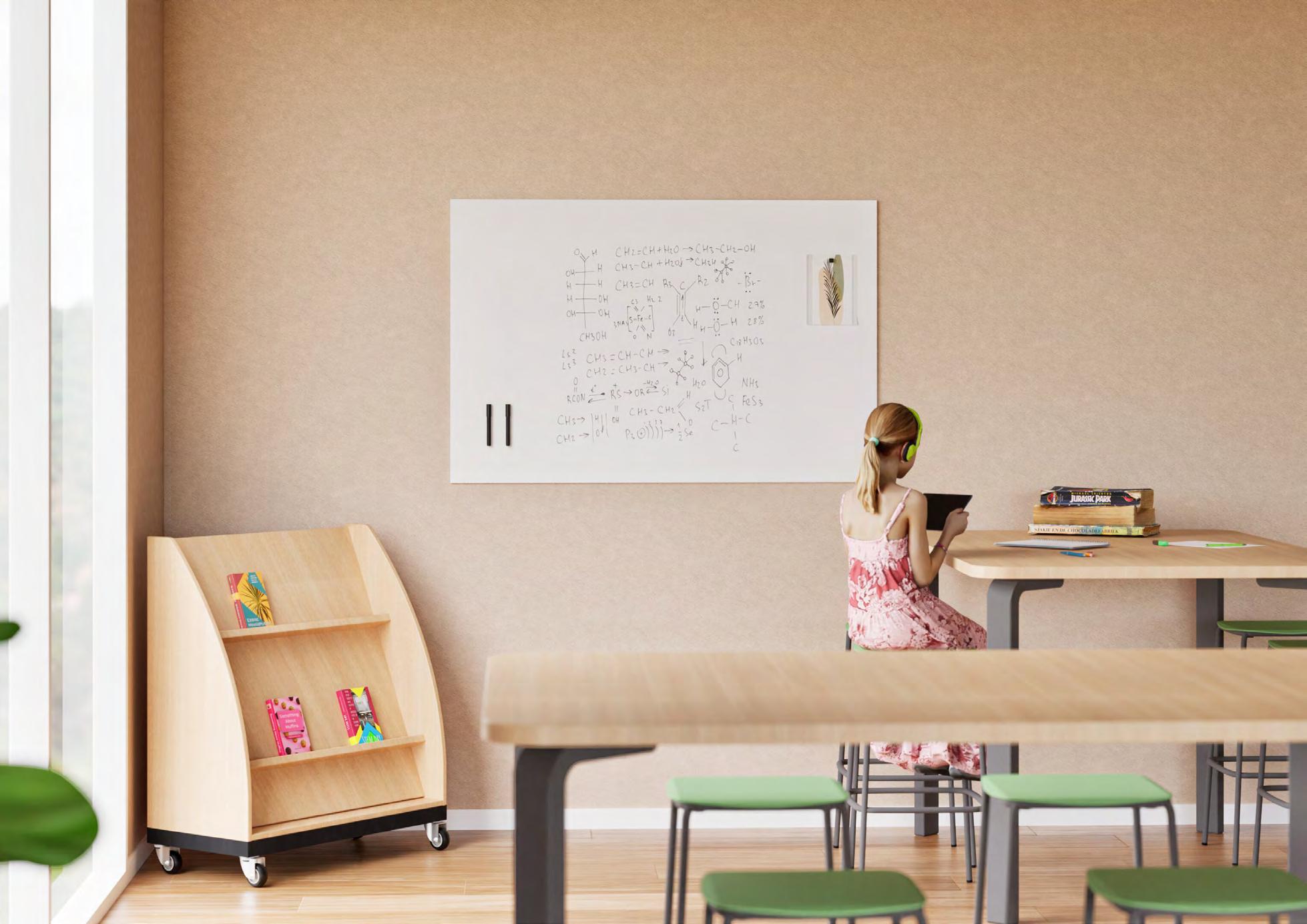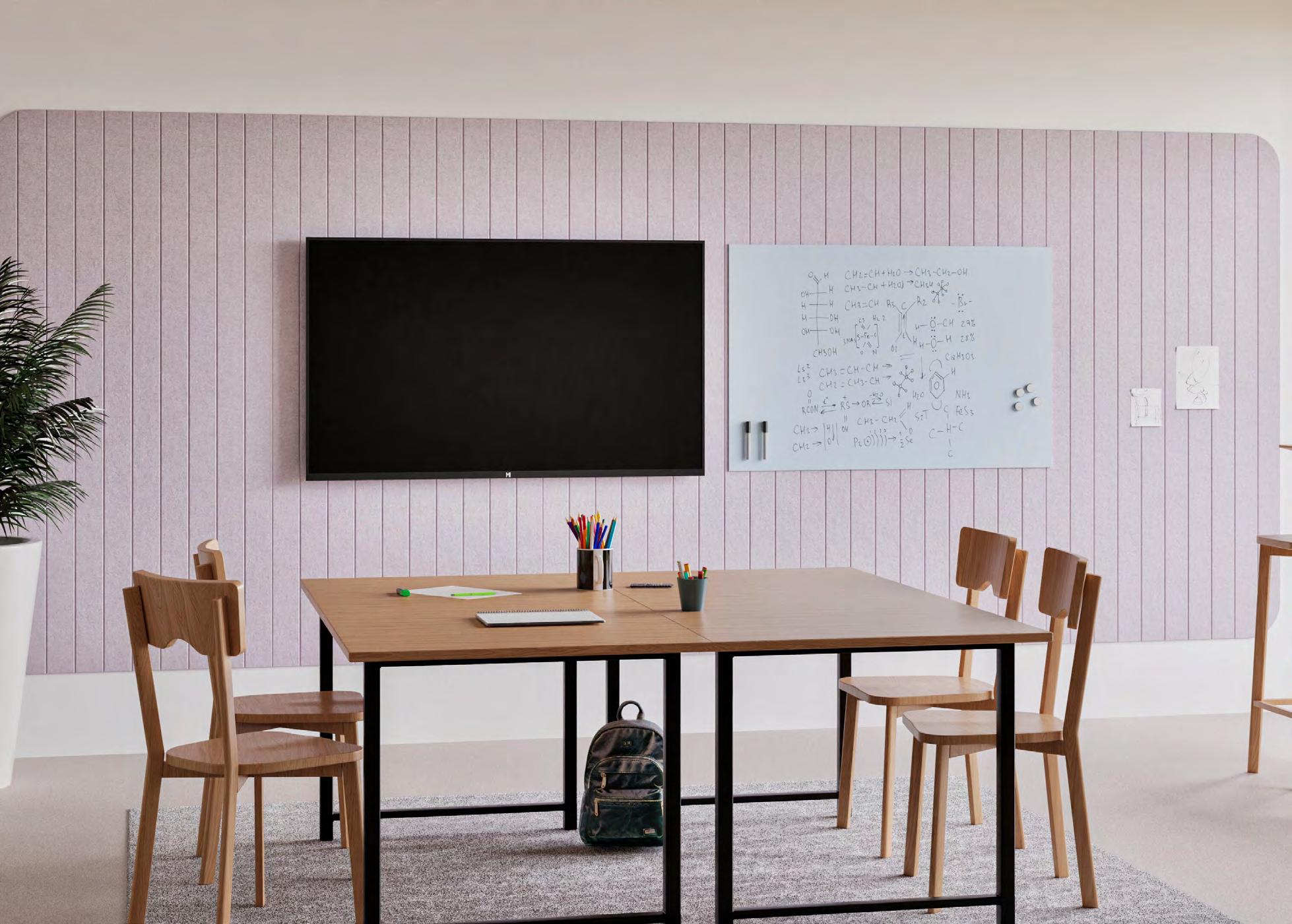 Chameleon Sharp Wall Acoustics est le panneau mural acoustique qui apporte le calme dans la salle de classe. Avec ses lignes épurées, sa finition sécurisée et sa capacité acoustique soigneusement étudiée, il devient un élément essentiel d’un environnement d’apprentissage agréable. Disponible en 23 couleurs différentes (p. 46).