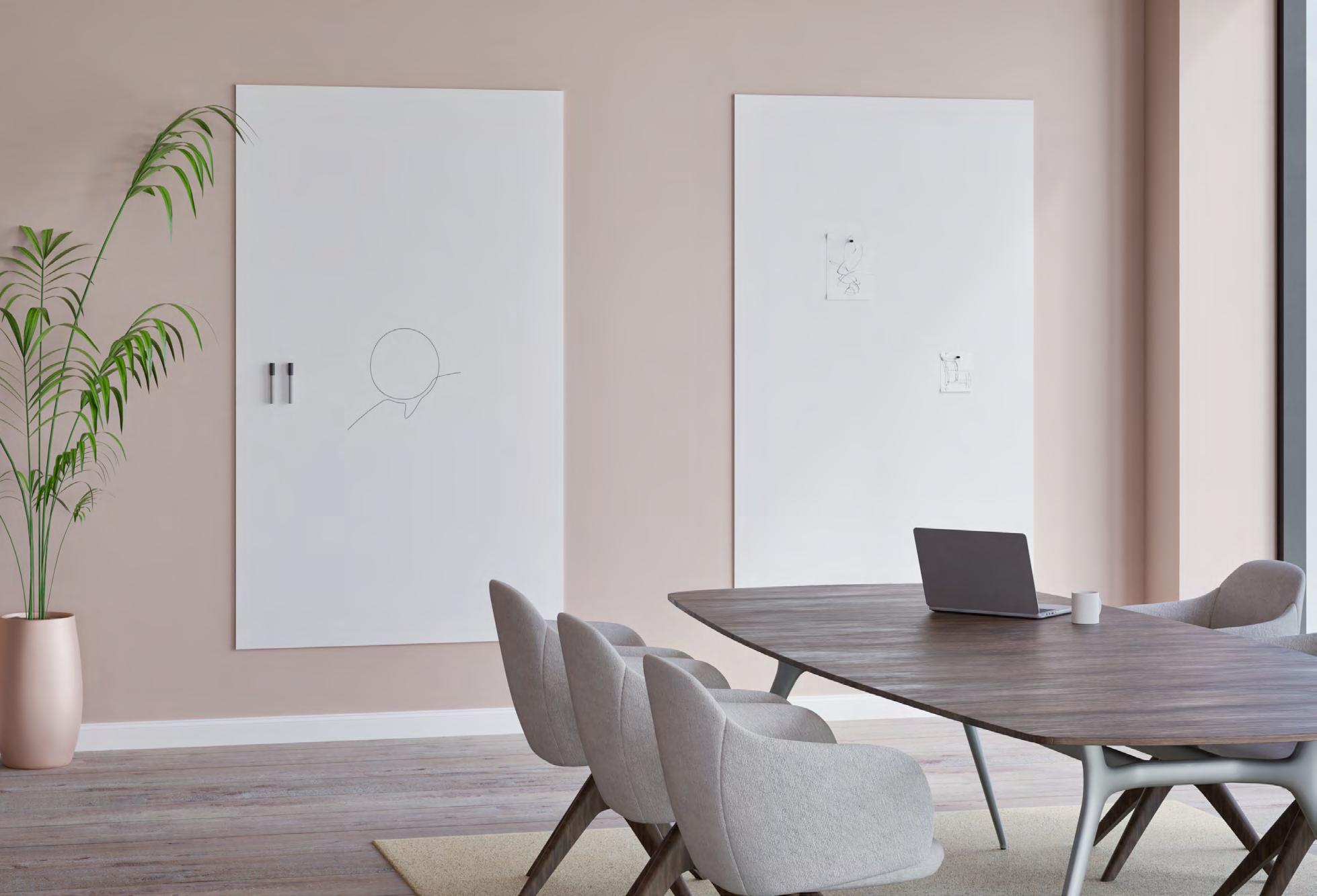 SatinTones est une surface en ceramic steel à finition mate. Cette surface dégage une impression de calme et reste parfaitement lisible sous tous les angles. De plus, elle est disponible en 15 teintes subtiles. SatinTones constitue une bonne alternative aux tableaux blancs en verre.