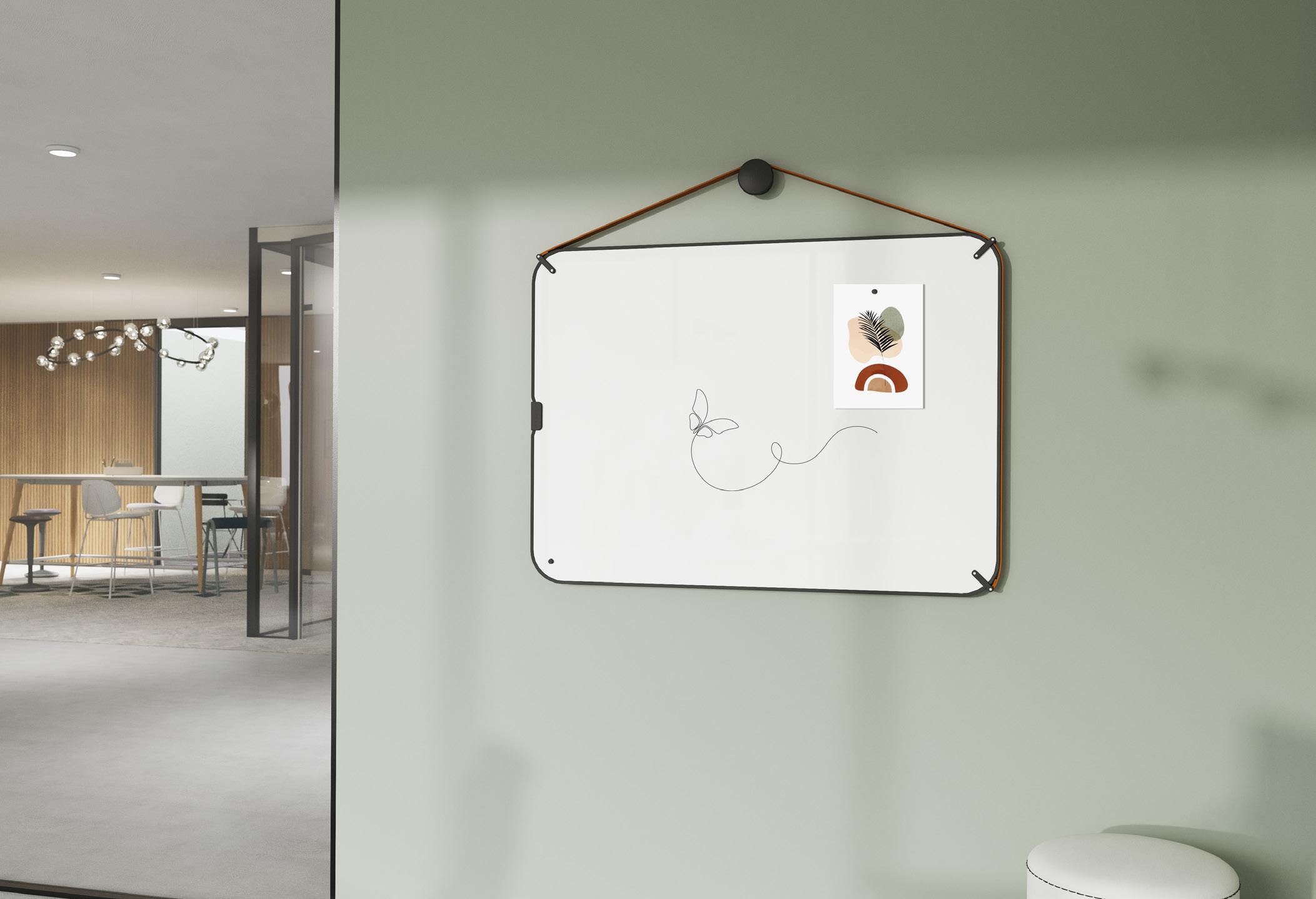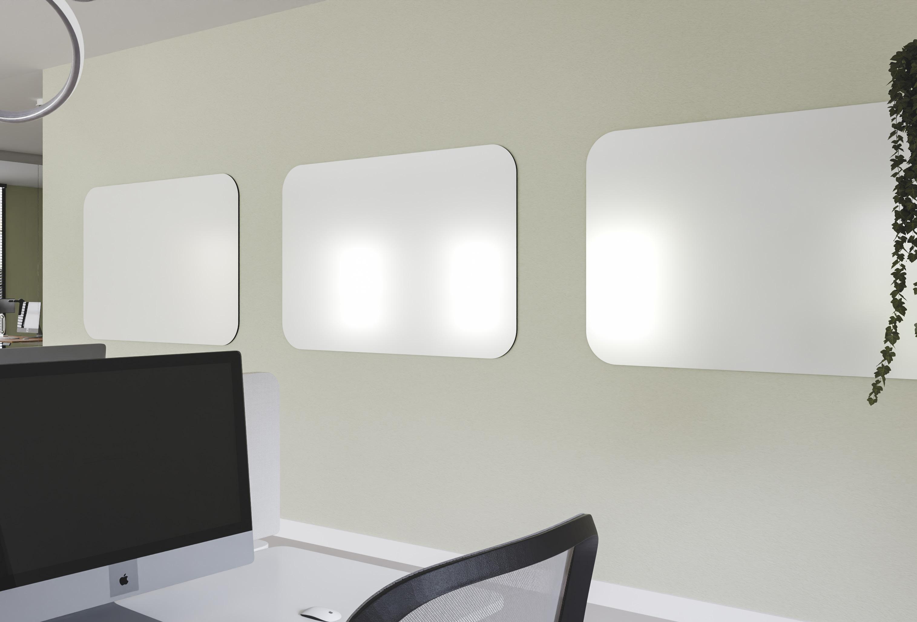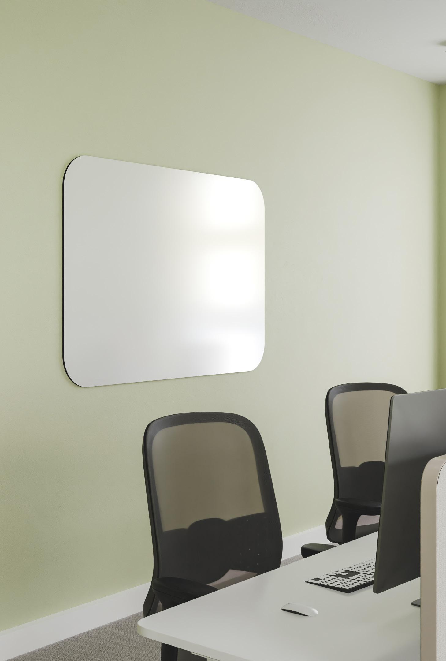 Chameleon Curve is een frameloos whiteboard met ronde hoeken. Chameleon Curve panelen kunnen eenvoudig opgehangen worden met het magnetische montagesysteem dat meegeleverd wordt.