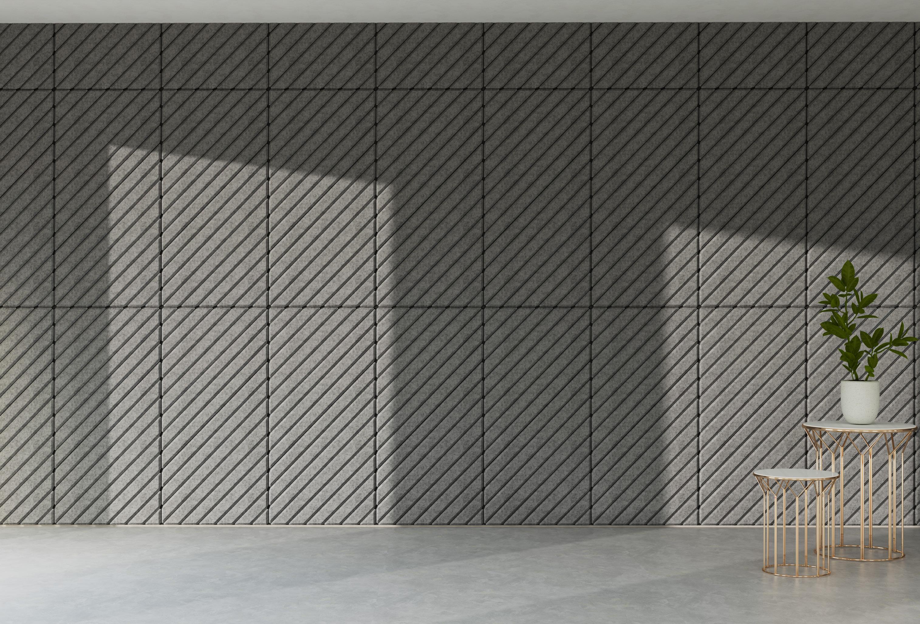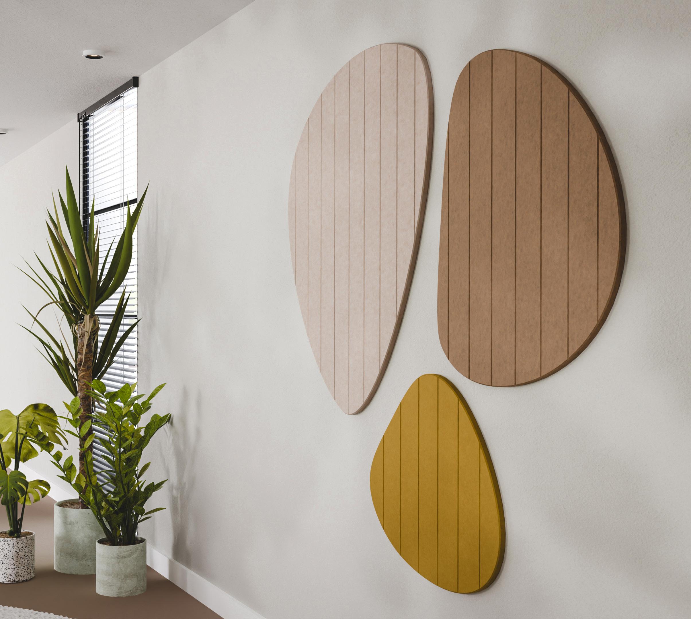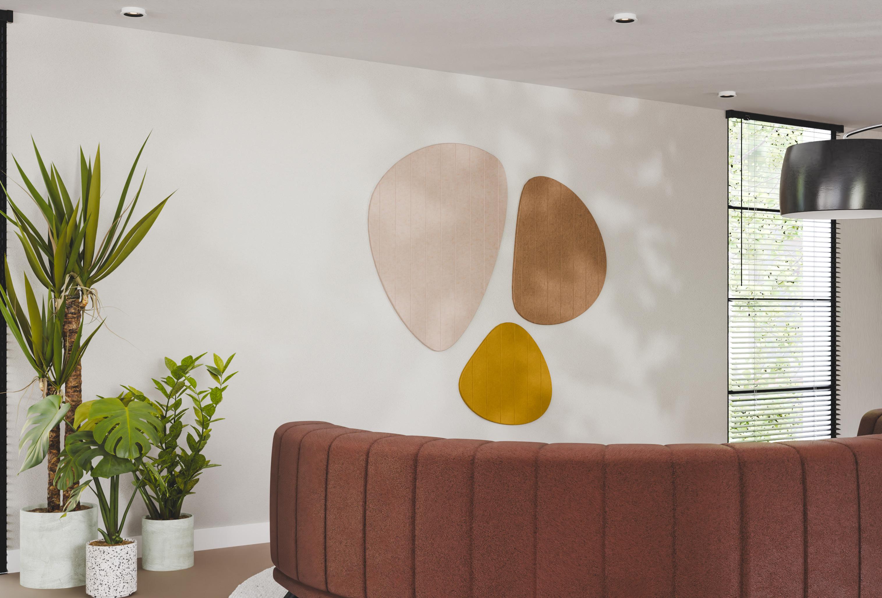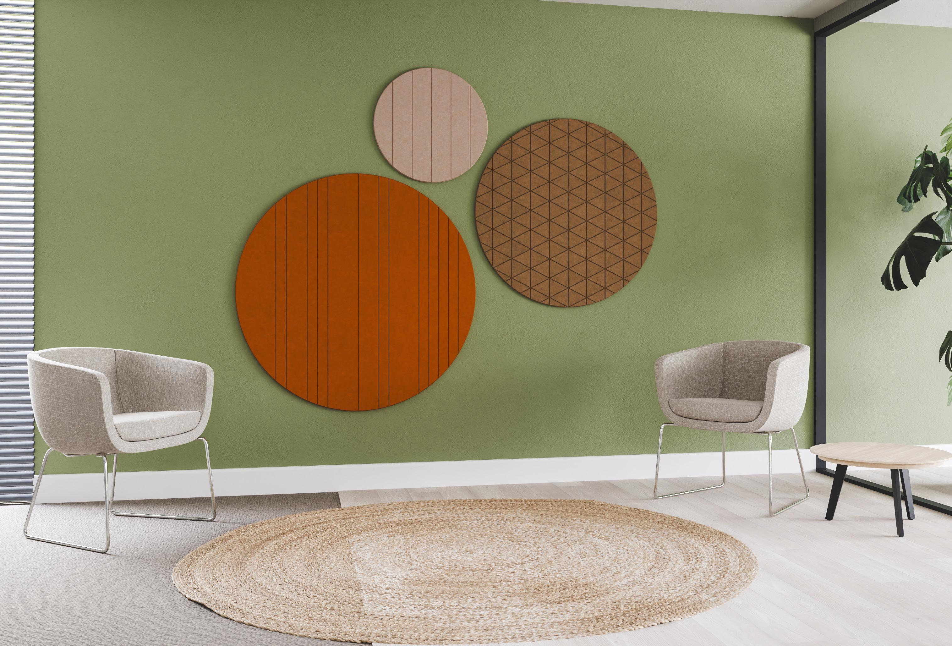• Een PET-vilt akoestisch paneel met keuze uit 21 kleuren (zie p. 31) en optioneel een bedrukking (enkel op White - P001) of het V-cut patroon DP01.