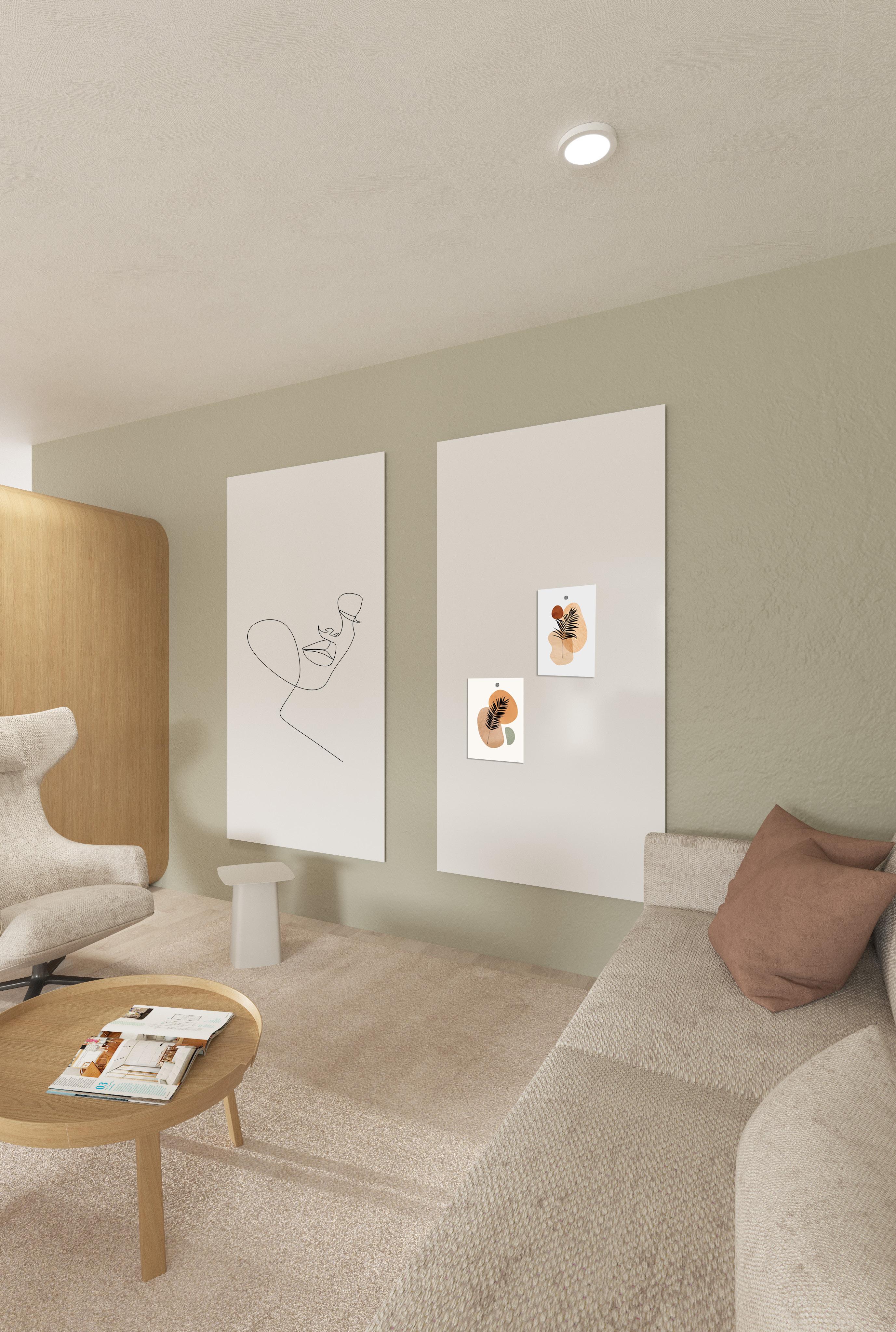 Simpel en minimalistisch. Dit whiteboard hangt in zijn meest eenvoudige vorm: rechttoe rechtaan, zonder frame en wit aan alle zichtkanten. Dát is de kracht van Sharp. Het rechthoekige whiteboard is verkrijgbaar in 8 verschillende maten en kan zowel horizontaal als verticaal opgehangen worden.