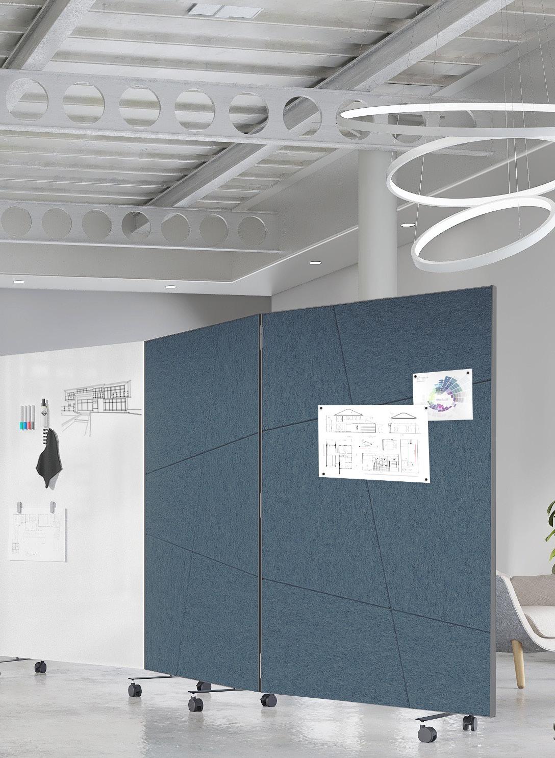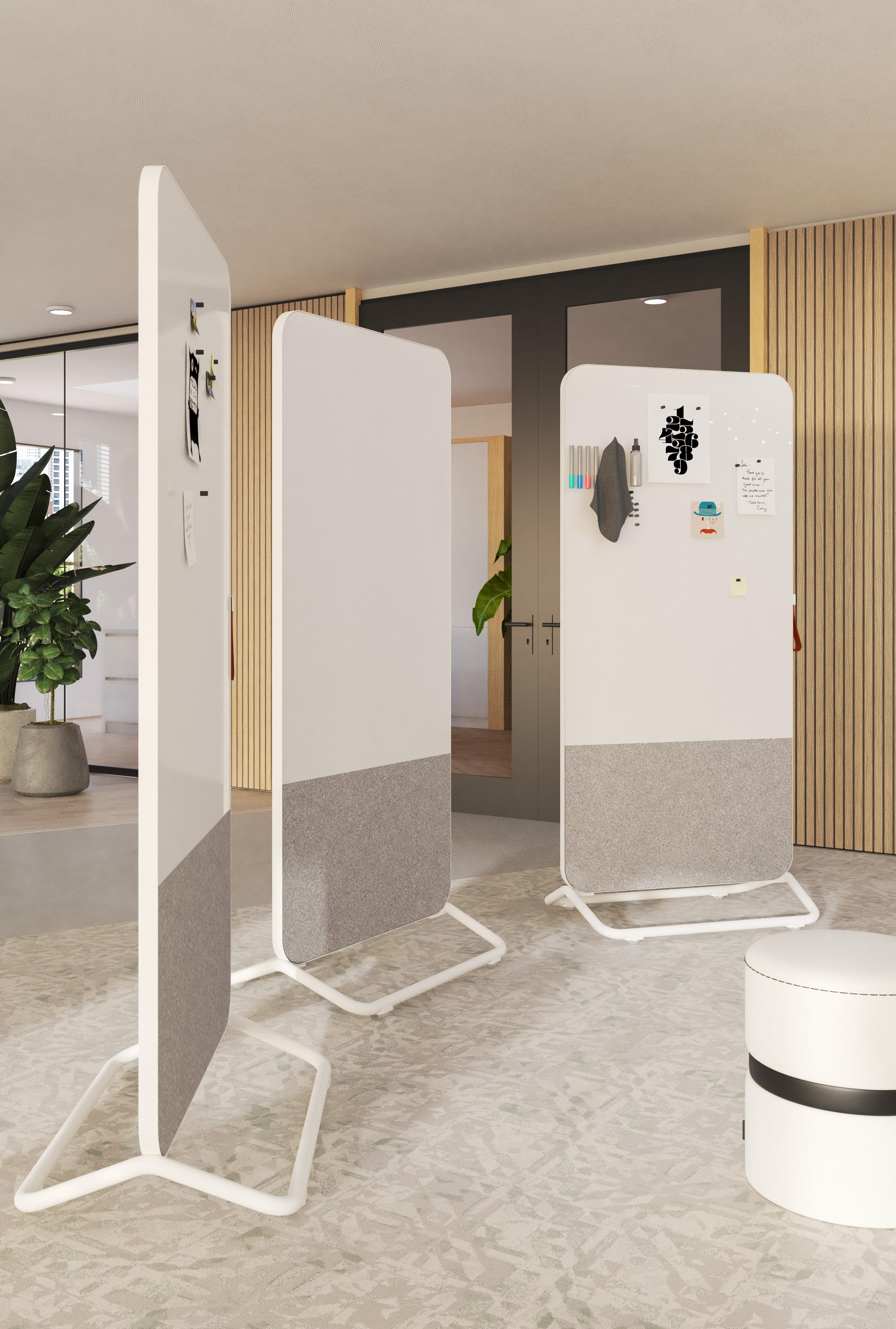 Verrijdbare whiteboards dragen bij aan een dynamische werkomgeving. Ze bevorderen samenwerking en interactie.