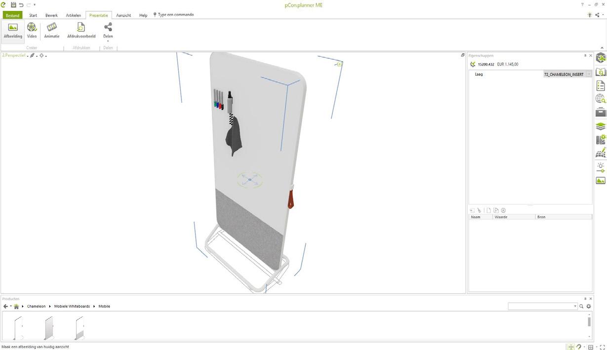 Ga aan de slag met Chameleon producten in pCon.planner. Plaats assortiments artikelen of bouw een eigen whiteboard in de maatwerk configurator.