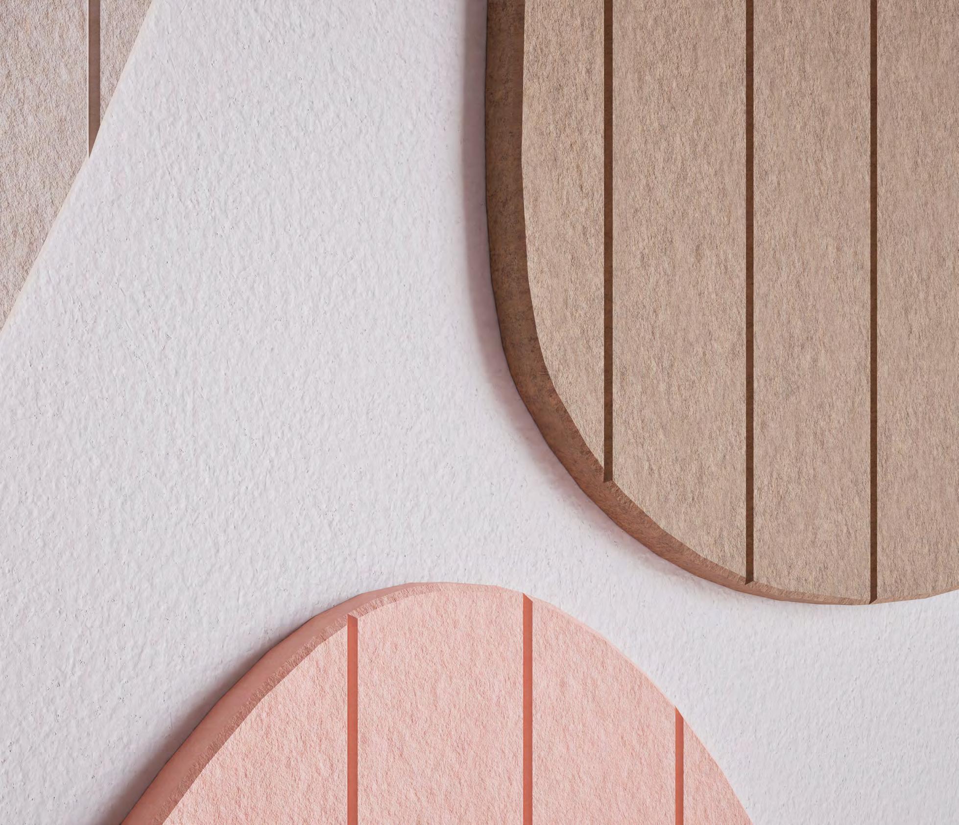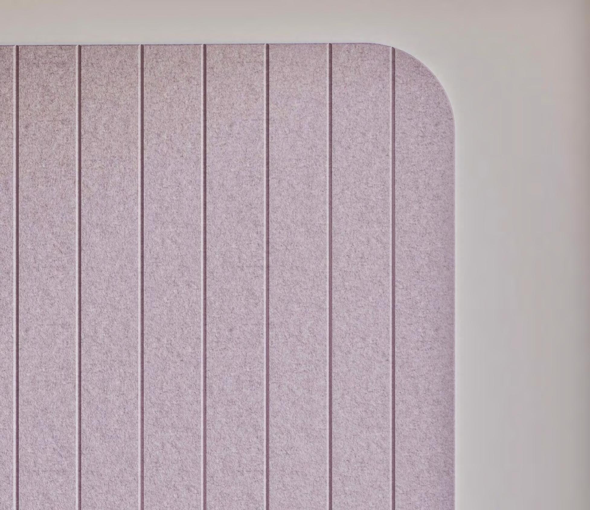 Chameleon Acoustics is made from 100% recyclable polyethylene terephthalate (PET), more than 50% of which comes from recycled PET bottles. These materials are processed into a soundabsorbing felt with a soft texture.