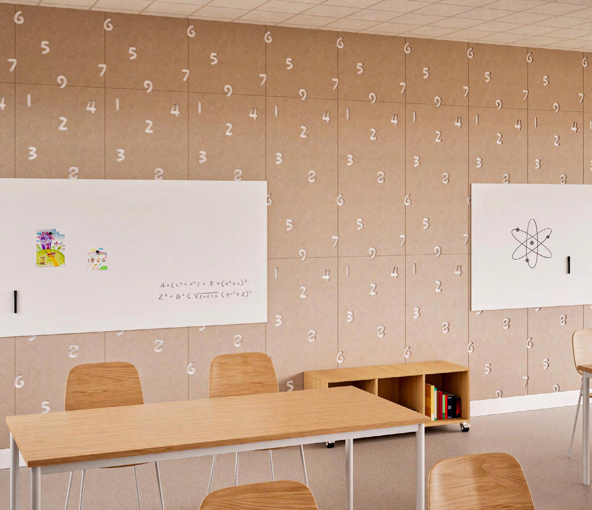 Chameleon Sharp Wall Acoustics is the acoustic wall panel that brings calm to the classroom. With clean lines, a safe finish, and carefully considered sound-dampening properties, it becomes an essential part of a comfortable learning environment. Available in 23 different colours (p. 46).