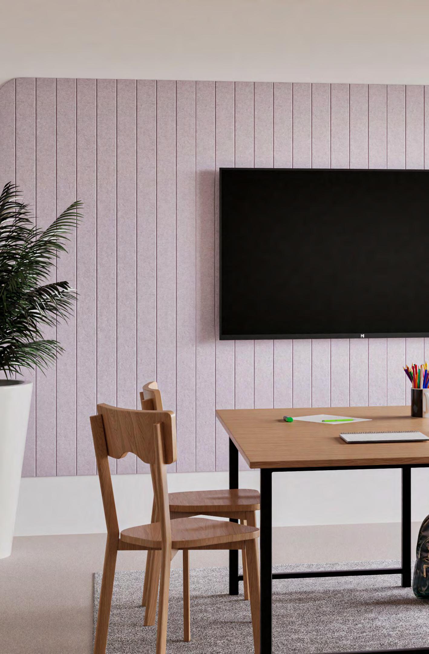 Chameleon Sharp Wall Acoustics is the acoustic wall panel that brings calm to the classroom. With clean lines, a safe finish, and carefully considered sound-dampening properties, it becomes an essential part of a comfortable learning environment. Available in 23 different colours (p. 46).