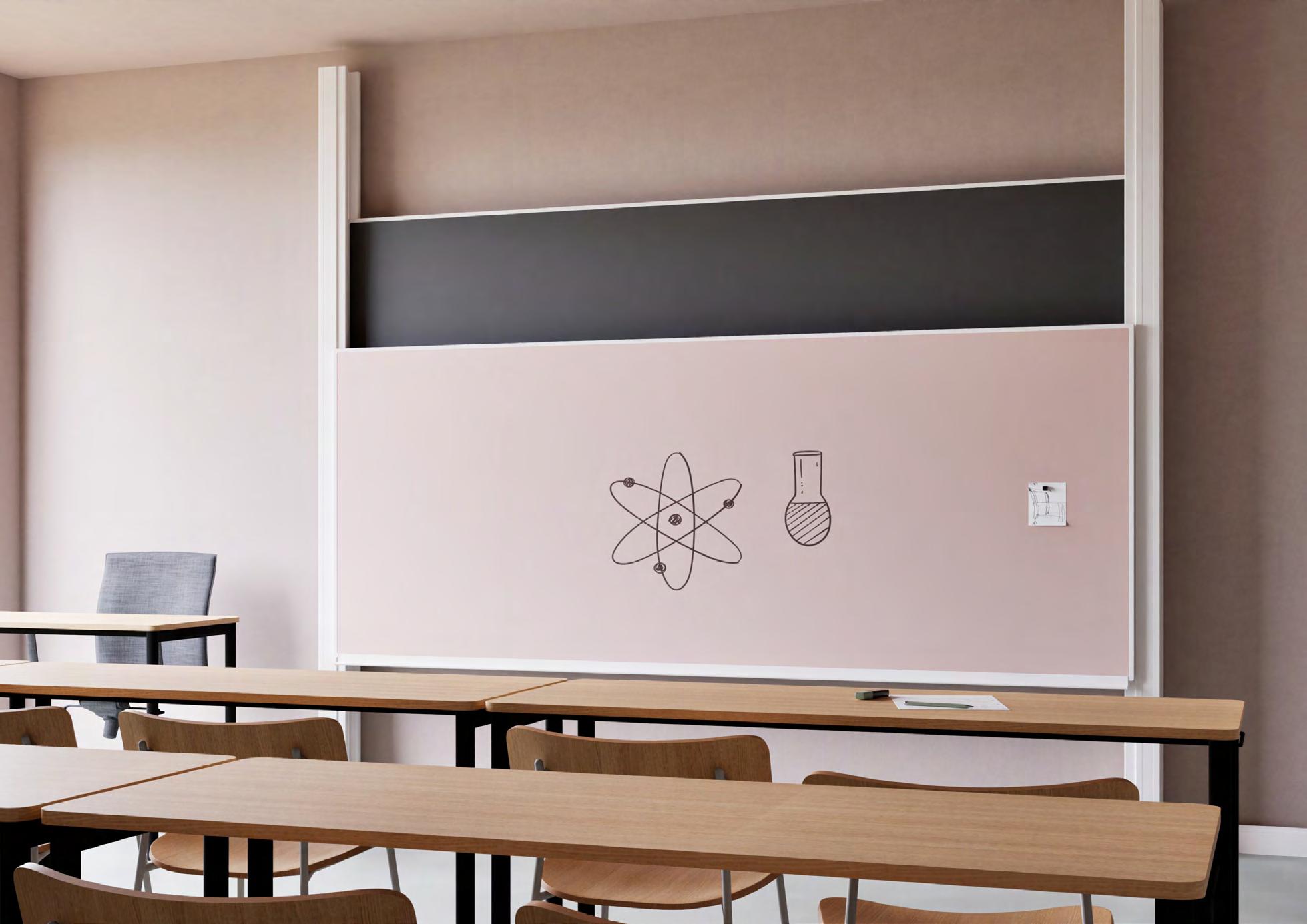 Chameleon Sharp Wall transforms a classroom wall into a bright writing surface for dynamic teaching. The panels align almost seamlessly and provide clarity, calmness and interaction. Sustainable, scratch-resistant and designed for intensive use. This Sharp Wall can be installed both vertically and horizontally.